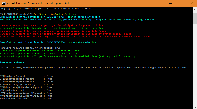 Dopo l’esecuzione del comando Install-Module SpeculationControl possono venirci restituiti degli errori, SOLO in quel caso digitare