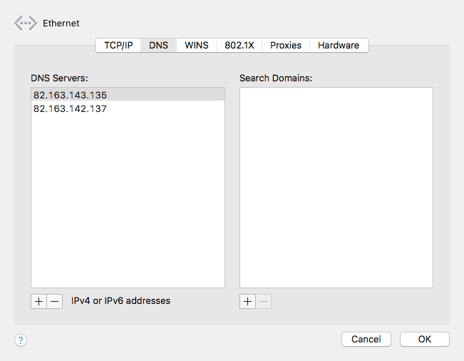 Controlliamo le attuali impostazioni DNS, se troviamo i seguenti valori siamo infetti, quindi basterà selezionarli uno ad uno e premere il pulsante “-“.