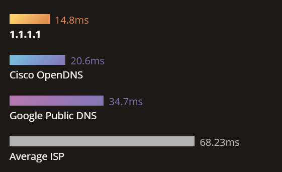 - attualmente risulta essere il più veloce server DNS disponibile, con un tempo di risposta di 14 ms (Google ora viaggia intorno ai 30 ms)