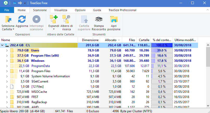 Il più famoso, forse, è WinDirStat: l’interfaccia è molto semplice e mostra tre riquadri di riferimento, nello specifico: