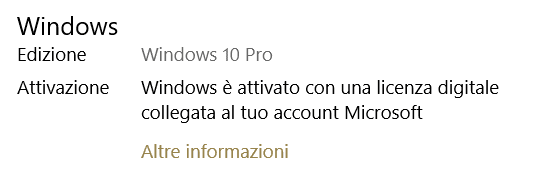 Prima di eseguire il passaggio è utile anche verificare le condizioni della licenza e che il nostro sistema sia correttamente attivato, per farlo accedere da Start alle Impostazioni > Aggiornamento e Ripristino > Attivazione.