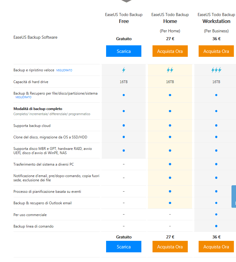 Il programma che abbiamo analizzato contiene diverse funzioni utilissime. Andiamo, quindi, a scoprire EaseUS Todo Backup. Innanzi tutto, possiamo scaricare la versione gratuita, utilizzabile a tempo indeterminato, cliccando qui. È richiesto Windows (qualsiasi versione da XP a 10). Per la versione Mac, fare riferimento a questo link.