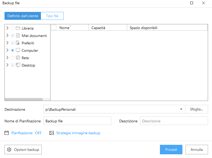 Che dire, però, se volessimo salvare solo alcuni file, alcune cartelle o magari la posta elettronica? Abbiamo funzioni apposite per salvare solo alcuni dati invece che intere partizioni.