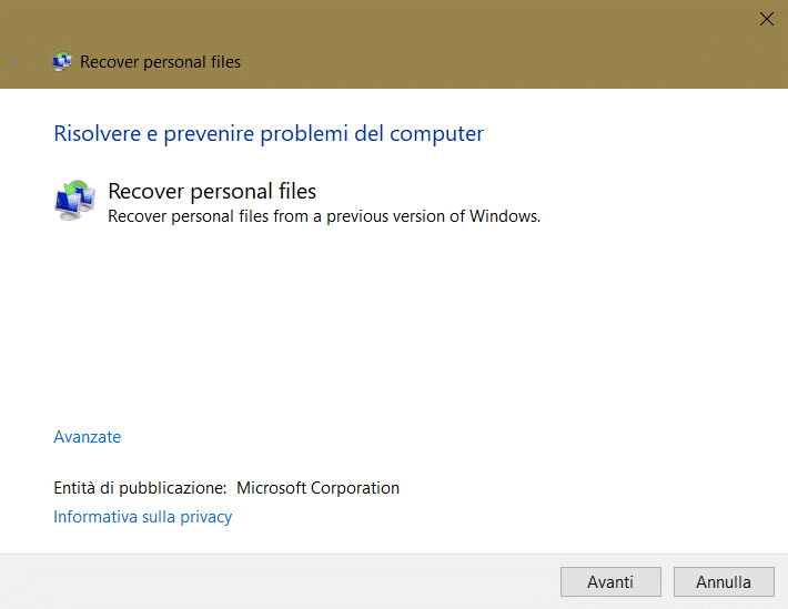 Lo strumento è scaricabile da qui, dopo l’avvio eseguirà delle azioni automatiche per ricercare file eliminati durante l’upgrade.
