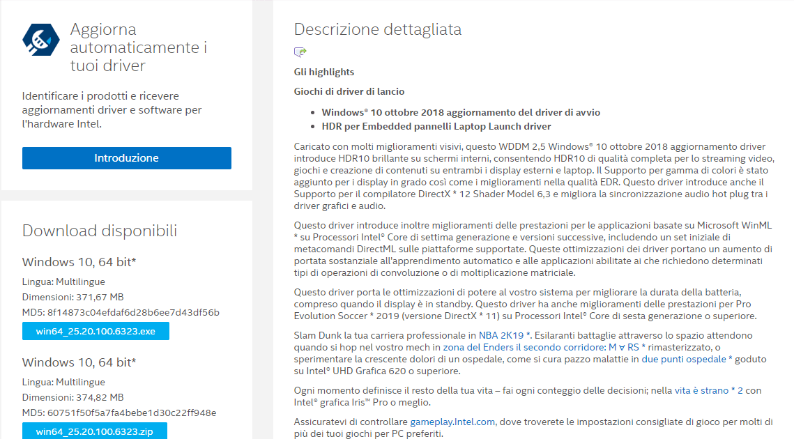 Per fortuna Intel è corsa subito ai ripari rilasciando una versione aggiornata del driver che porta la versione dalla 10.25.0.3 o 10.25.0.8 alla nuova versione 10.25.0.10.