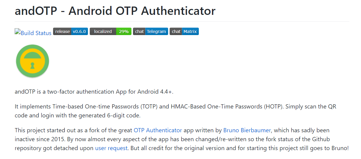 Lo sviluppatore ha pubblicato una pagina dedicata alla migrazione a andOTP da parte di altri autenticatori 2FA.