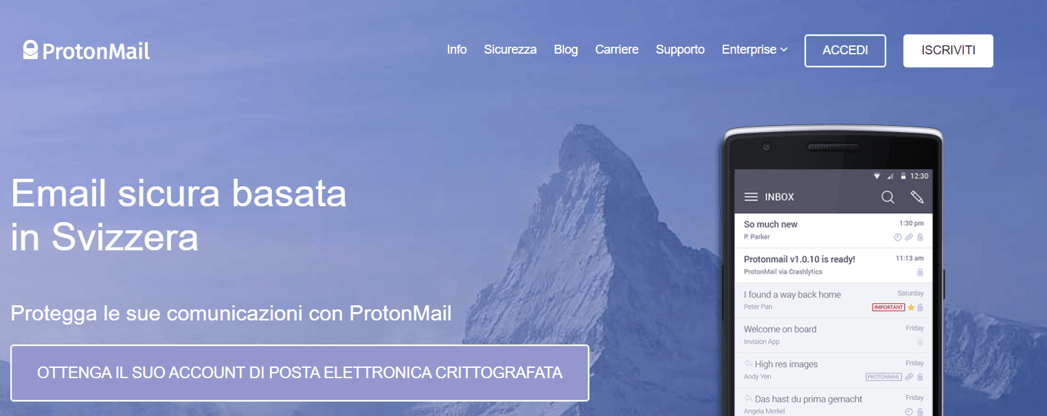 Gmail può esser amato o odiato: non a tutti può piacere. Un’ottima alternativa è ProtonMail, questo servizio di origine Svizzera offre crittografia end-to-end, non richiede dati personali durante la registrazione (solo nome utente e password) e non mantiene nessun LOG IP durante l’uso del servizio.