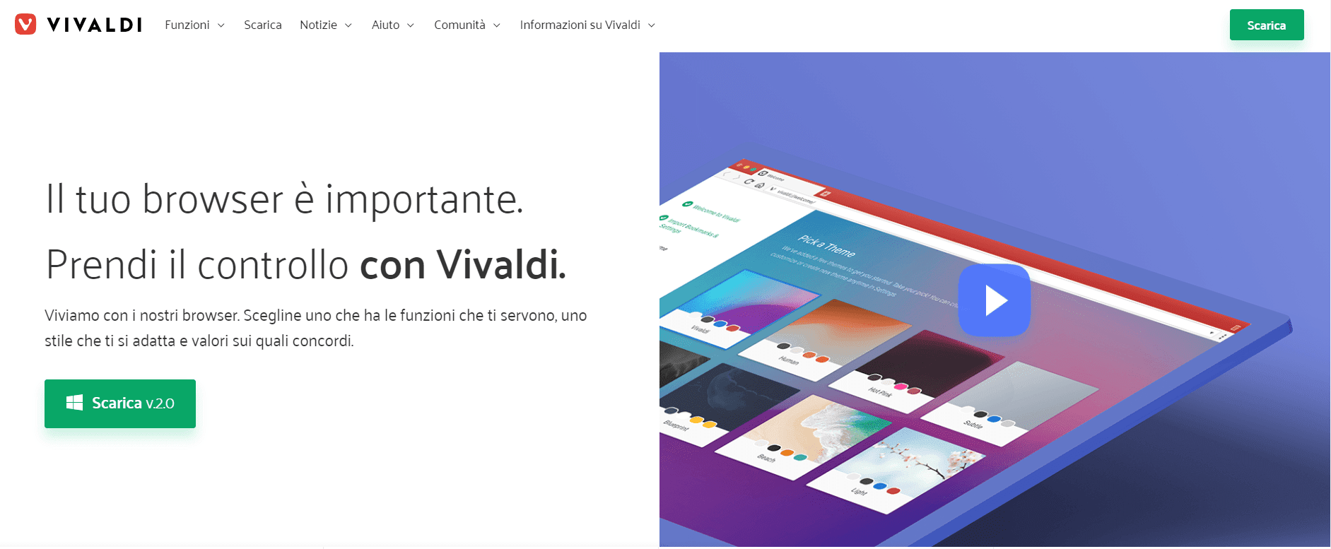 Un altro valido browser è il nuovo arrivato Vivaldi, creato da qualche anno con l’obiettivo di offrire un browser più attento alla privacy degli utenti.