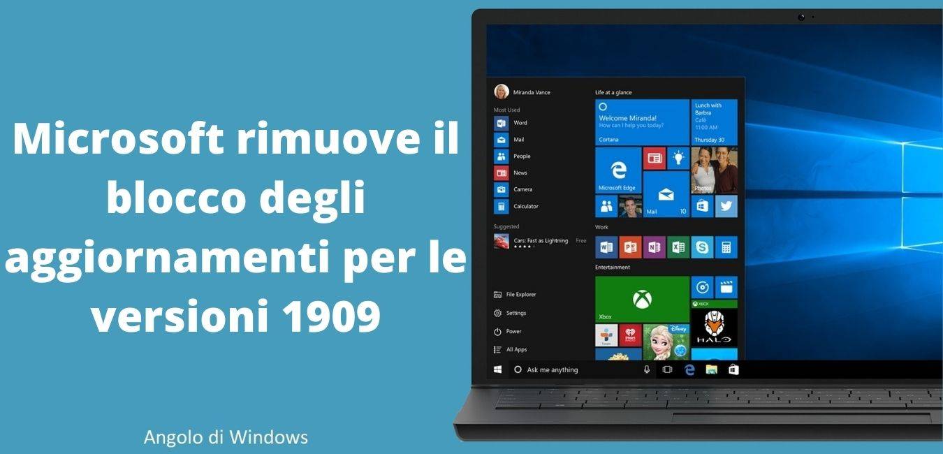 Microsoft rimuove il blocco degli aggiornamenti per le versioni 1909