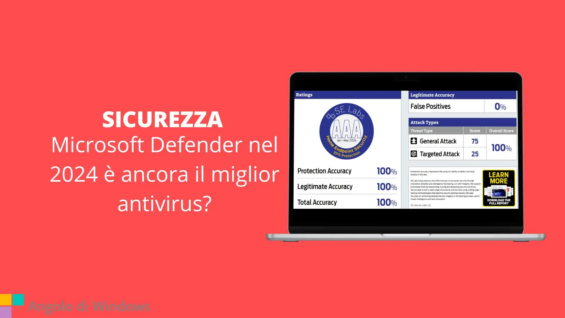 - Test indipendenti: Secondo test condotti da laboratori di sicurezza informatica indipendenti come AV-TEST e SE Labs, Windows Defender offre una protezione solida contro malware, virus e altre minacce online. Ottiene regolarmente risultati elevati nei test di rilevamento e blocking, dimostrando la sua efficacia nel contrastare le diffuse minacce informatiche.