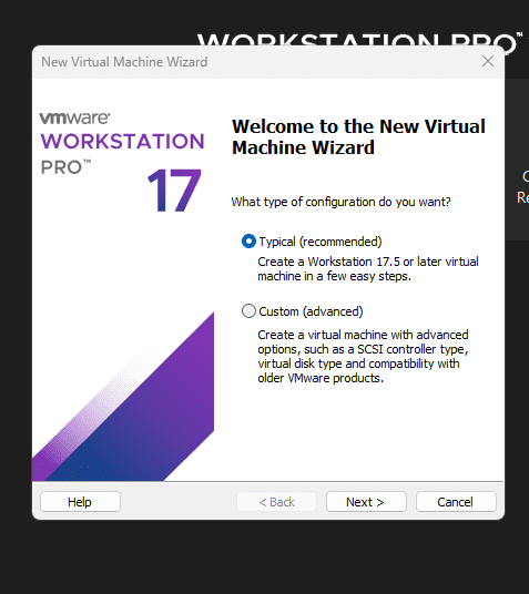 4. Fai clic su Nuova Macchina Virtuale e lascia la voce Typical