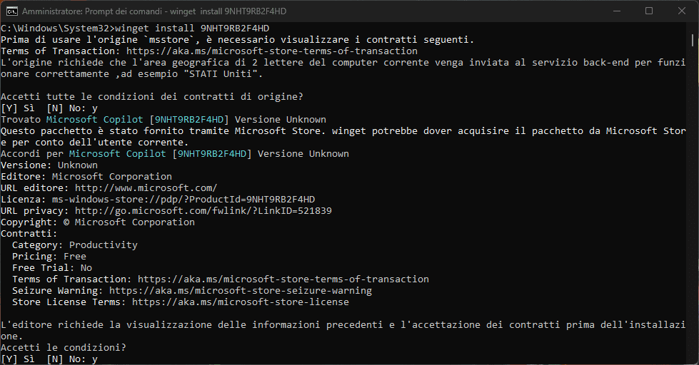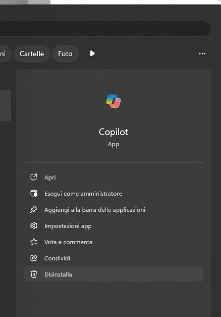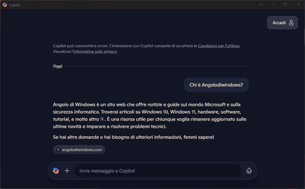 Completata l’installazione vi basterà digitare Copilot nella barra di ricerca e vi comparirà come primo risultato.