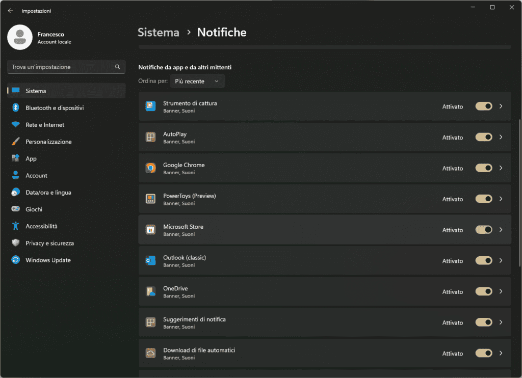 - Vai su Sistema > Notifiche.